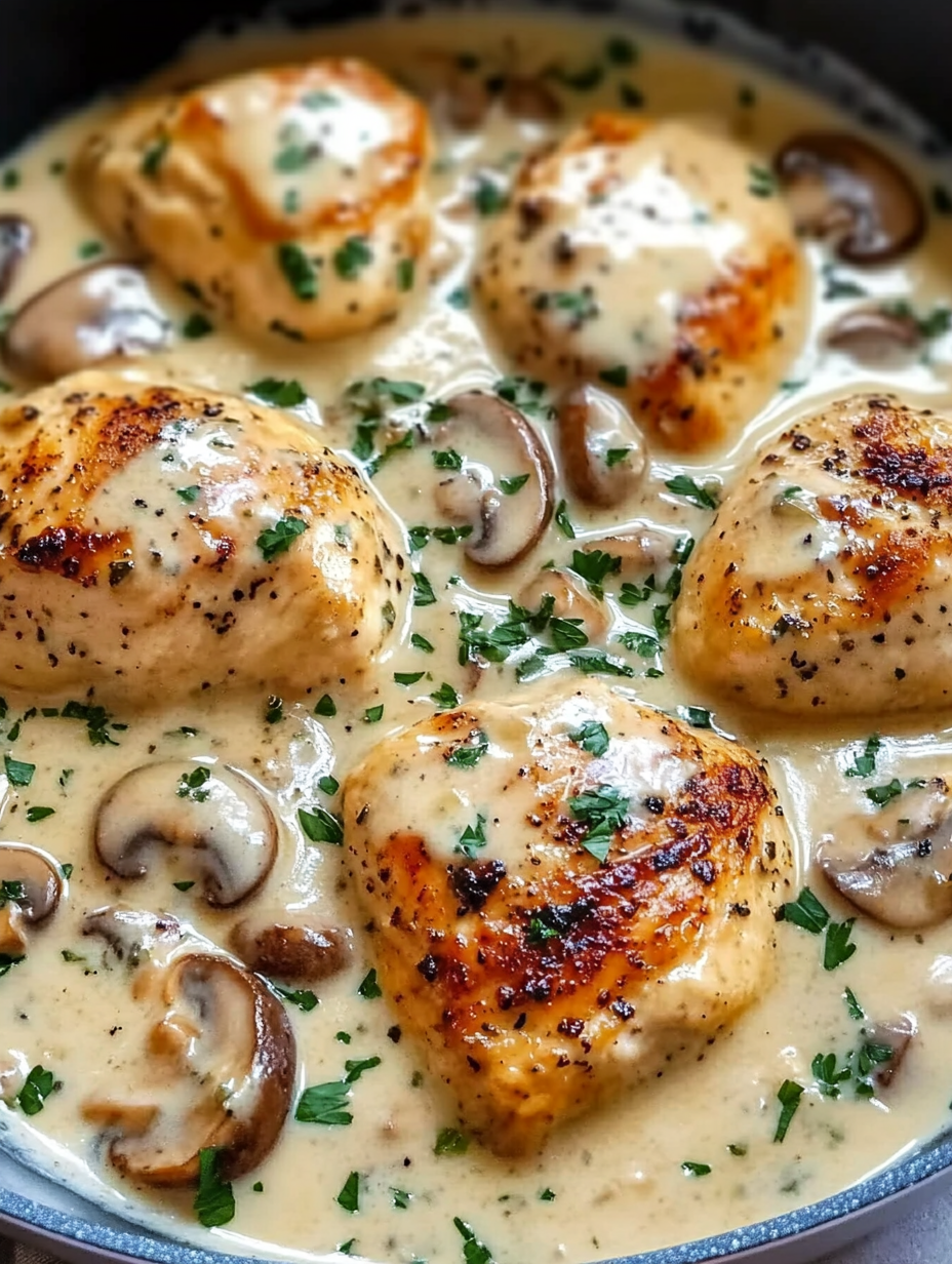 If you love comforting, creamy dinners that feel like something from a cozy restaurant, then Creamy Asiago Chicken might just become your new favorite meal. Imagine tender chicken simmered in a velvety sauce made with garlic, mushrooms, white wine, and nutty Asiago cheese. Every bite feels warm, rich, and satisfying—like wrapping yourself in a soft blanket after a long day.