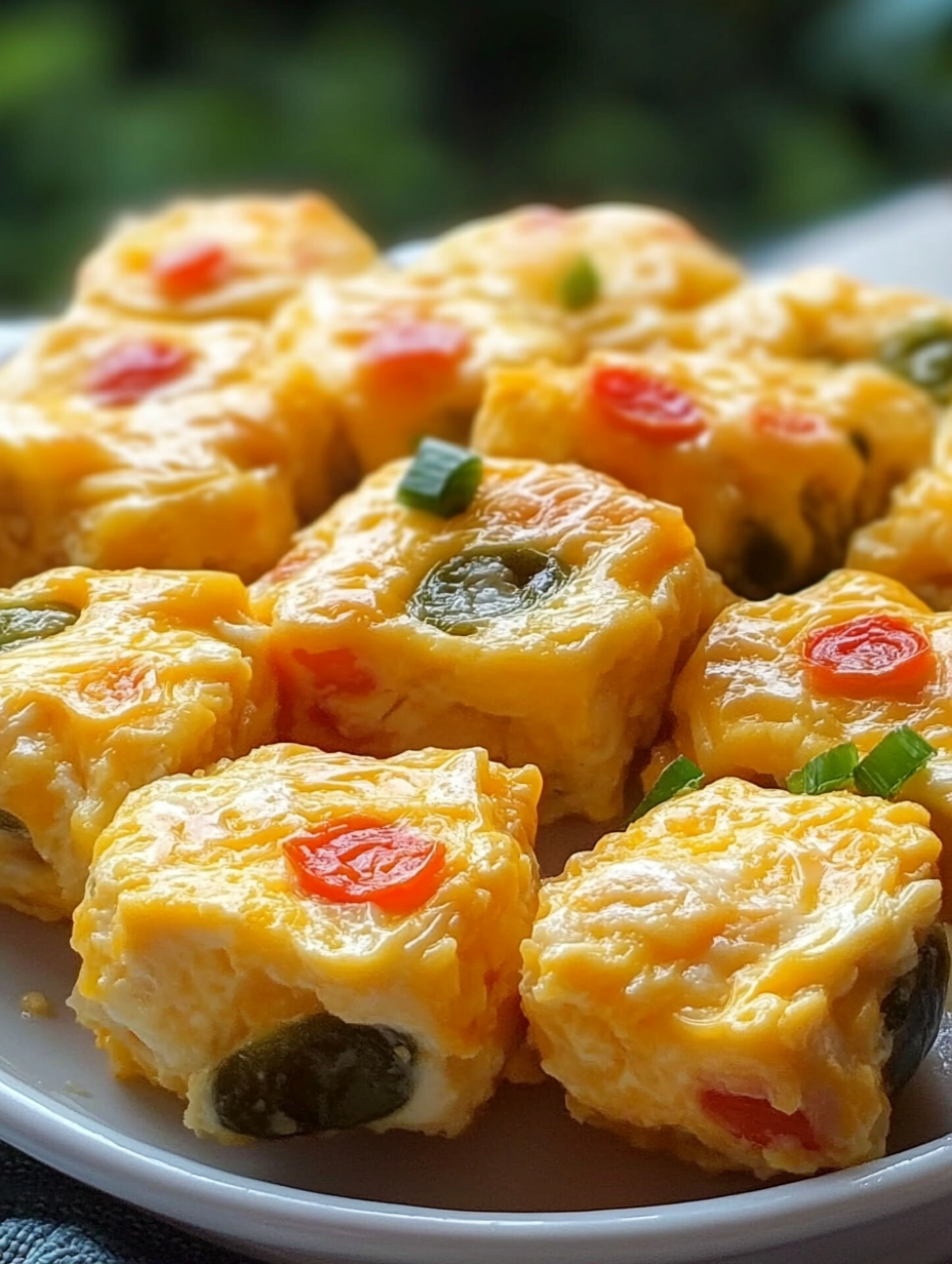 Instead of deep-frying or breading, this recipe bakes everything together. The eggs bind the ingredients, creating soft, sliceable squares packed with cheesy flavor.