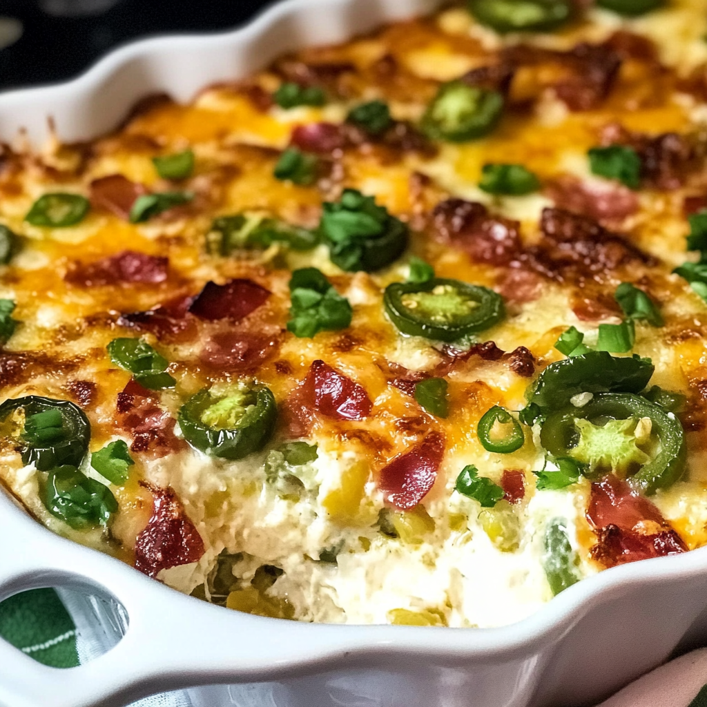Jalapeno Popper Casserole takes the bold, spicy flavors of jalapeno poppers and turns them into a full meal. It’s loaded with shredded chicken, creamy cheese, crispy bacon, and tater tots—a combination that’s both indulgent and comforting. Think of it as a spicy twist on classic comfort food, perfect for anyone who loves a little heat in their dinner.