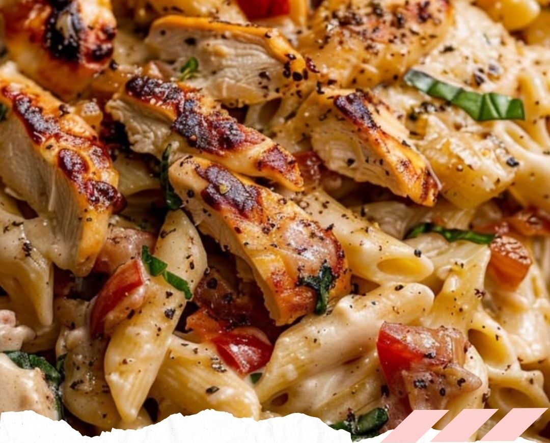 7- Serve the chicken and sauce over cooked penne pasta, garnished with chopped fresh parsley.