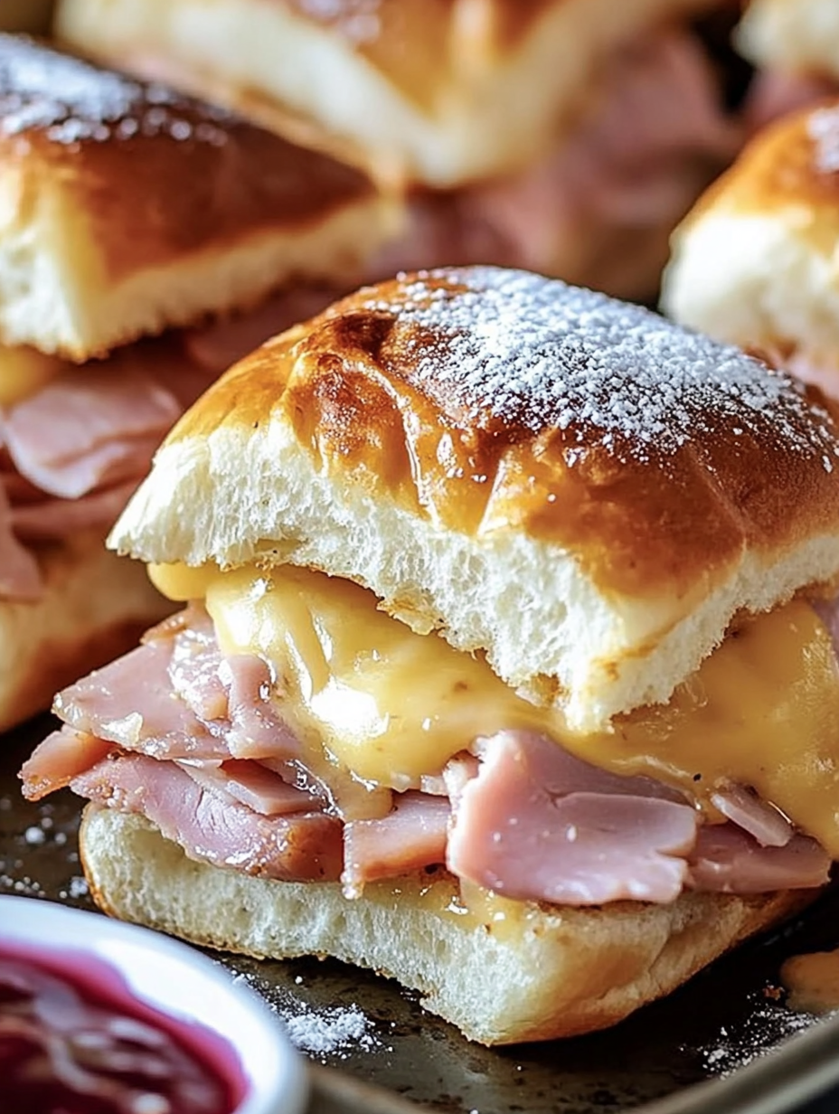 They combine melted Swiss cheese, layers of ham and turkey, and a sweet dusting of powdered sugar. It’s like comfort food with a little sparkle.