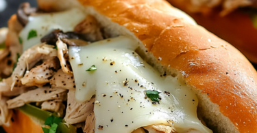 Lazy Slow Cooker Chicken Cheesesteak Sandwich
