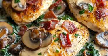 Smothered Chicken with Creamed Spinach, Bacon, and Mushrooms