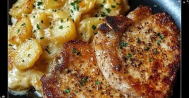Garlic Parmesan Pork Chops With Cheesy Scalloped Potatoes