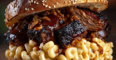 BBQ Burnt End Beef Sandwich With Macaroni and Cheese