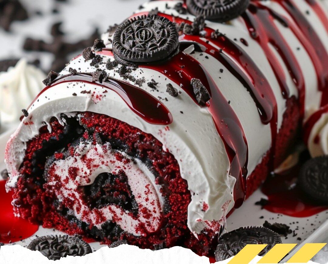 Assemble the cake roll by spreading the cream cheese frosting onto cooled cookies and sandwiching them together.